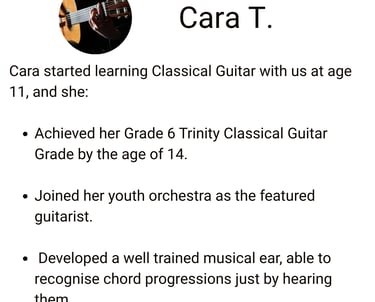 Melanie T. - Parent of Cara (achieved Grade 6 Classical Guitar aged 13)