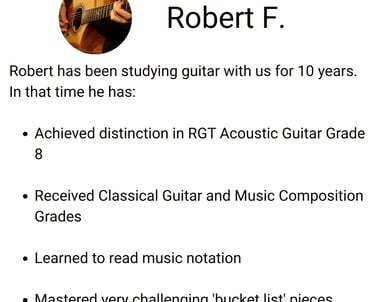 Robert W. - Parent of Anna (achieved Grade 5 Electric Guitar aged 12)